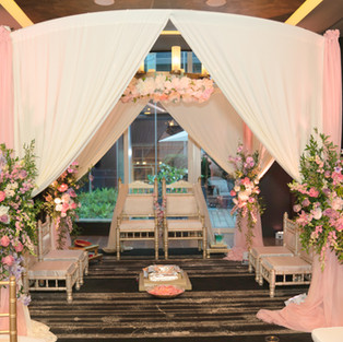 Downstairs, on the lounge floor of their apartment complex, OLuxe design created a perfect mandap for the occasion, no short than just drop dead gorgeous.